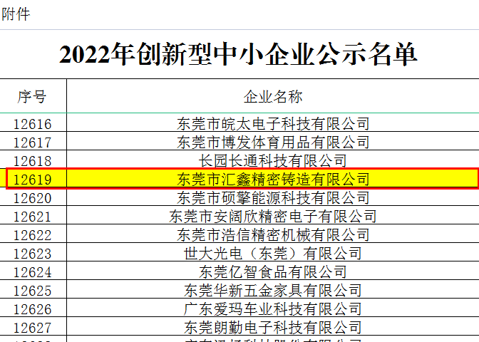 喜報|東莞市匯鑫精密鑄造有限公司榮獲廣東省“2022年創新型中小企業”認定!
